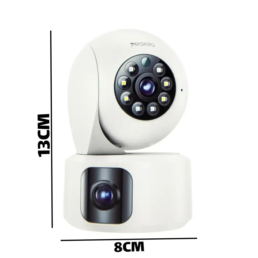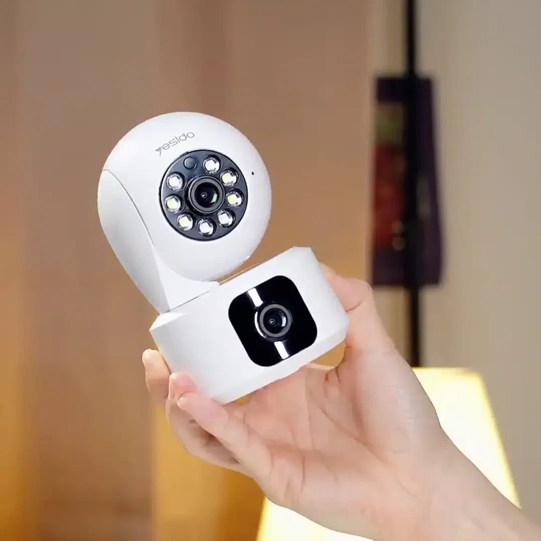 YESIDO KM16 është një kamera inteligjente sigurie për brenda ambienteve, e pajisur me dy lente Full HD dhe teknologji Wi-Fi, që ofron mbulueshmëri të gjerë 360°, vizion natën, zbulim lëvizjeje me AI dhe komunikim audio dyanshëm përmes aplikacionit në smartphone.