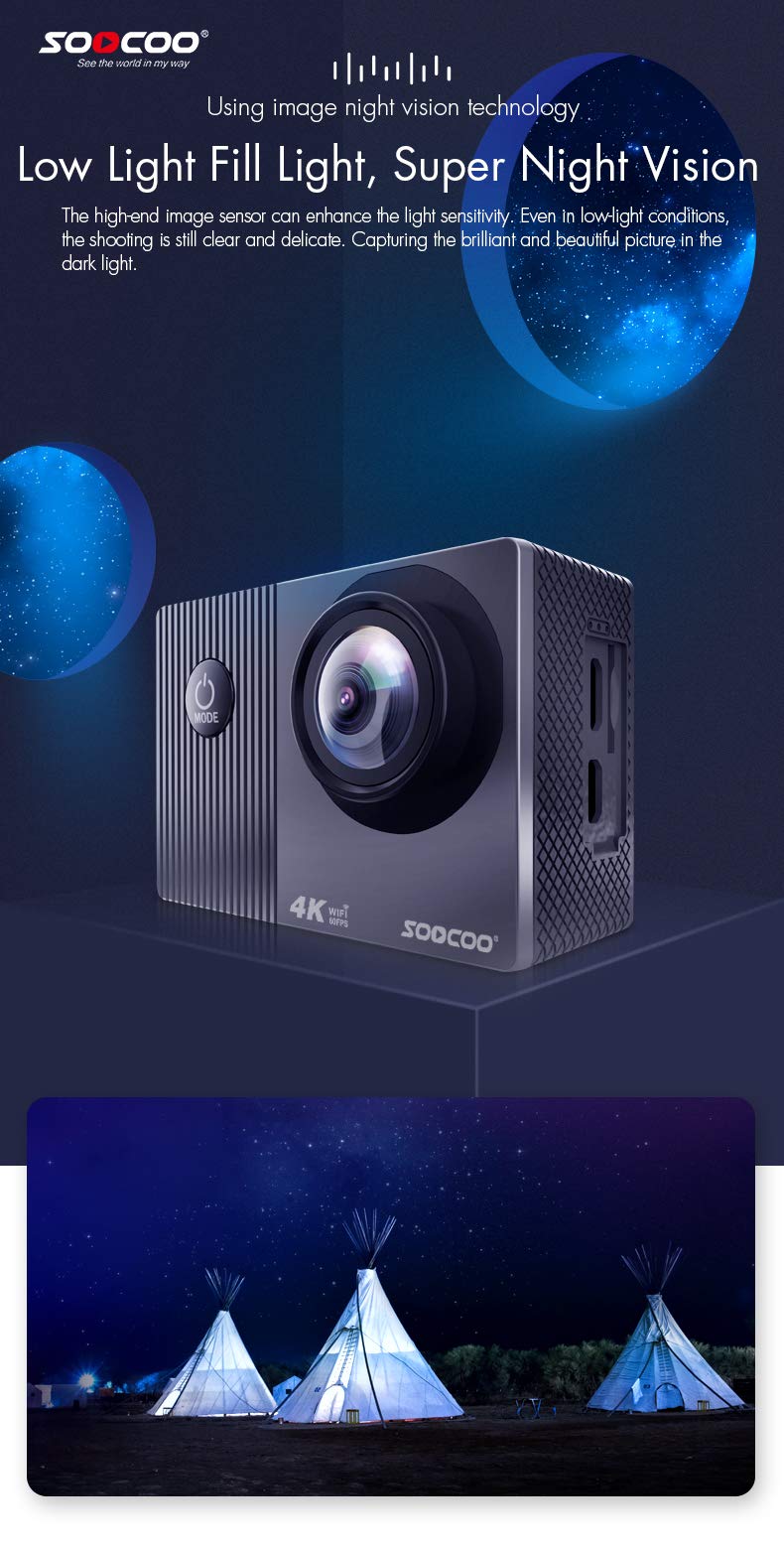 SOOCOO Action Camera 4K është një kamer sportive kompakte dhe e fuqishme, e projektuar për regjistrime me cilësi të lartë në kushte dinamike. Me video 4K në 60FPS, ekran me prekje dhe telekomandë, kjo kamer është ideale për sporte ekstreme, udhëtime, motoçiklizëm dhe aktivitete nën ujë. Ofron performancë të qëndrueshme dhe kontroll të lehtë në çdo situatë.