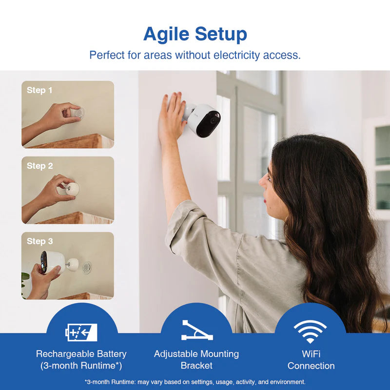 IMILAB EC4 është një kamer sigurie wireless me bateri qe mban 3 muaj me nje karikim të vetëm dhe spotlight, që ofron video me rezolucion të lartë 2.5K për monitorim të qartë të ambientit të jashtëm. Ajo funksionon me Smart Hub dhe ofron funksione të zbulimit të personave, bisedë dypalëshe dhe mundësi për energji alternative me panel diellor, duke e bërë zgjedhje të përshtatshme për shtëpi, oborre apo hyrje.