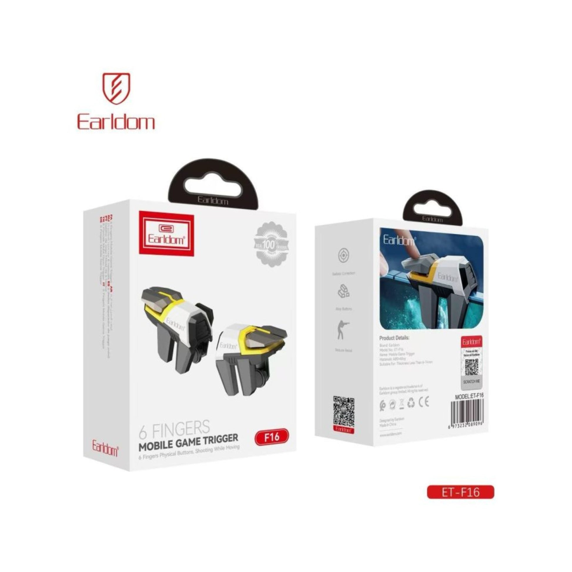 Earldom F16 është një aksesor për lojëra mobile i dizajnuar për të përmirësuar performancën e lojës në telefon — sidomos në lojëra FPS, Battle Royale dhe aksion si PUBG, Call of Duty Mobile, Free Fire etj. Ky device funksionon si një set 6 tasterësh mekanikë (6-Finger Trigger) që ju lejojnë të përdorni deri në 6 gishtërinj njëkohësisht për komandë më të shpejtë kur luani. Kjo rrit kontrollin, saktësinë dhe kohën e reagimit krahasuar me përdorimin vetëm të ekranit të ndjeshëm ndaj prekjes.