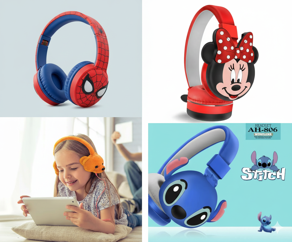 Kufje wireless për fëmijë me dizajne te ndryshme si Goku, Barbi, Stitch, Plush, Siperdman, Micky mouse.