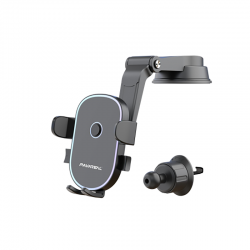 Mbajtëse telefoni për makinë me dizajn 2‑në‑1 që ju lejon ta vendosni telefonin tuaj në mënyrë të sigurt, praktike dhe të rregullueshme në vendet më të përdorura në automjet — në ventilim, panel ose xhamin e paraqitur të makinës.
