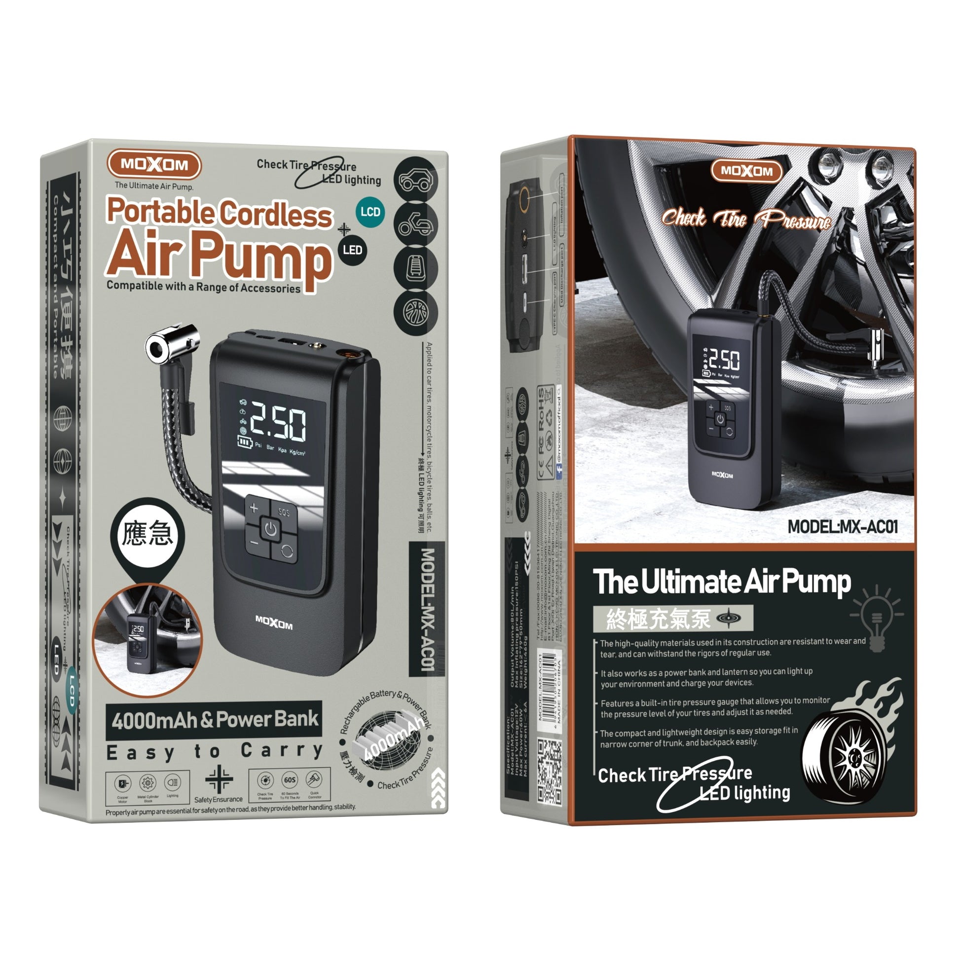 Me dizajn portativ dhe ekran inteligjent LCD, MX-AC01 ju lejon të kontrolloni dhe rregulloni presionin me saktësi të lartë. E pajisur me bateri të rikarikueshme që mund të shërbejë edhe si power bank, kjo pompë është partneri perfekt në çdo udhëtim.